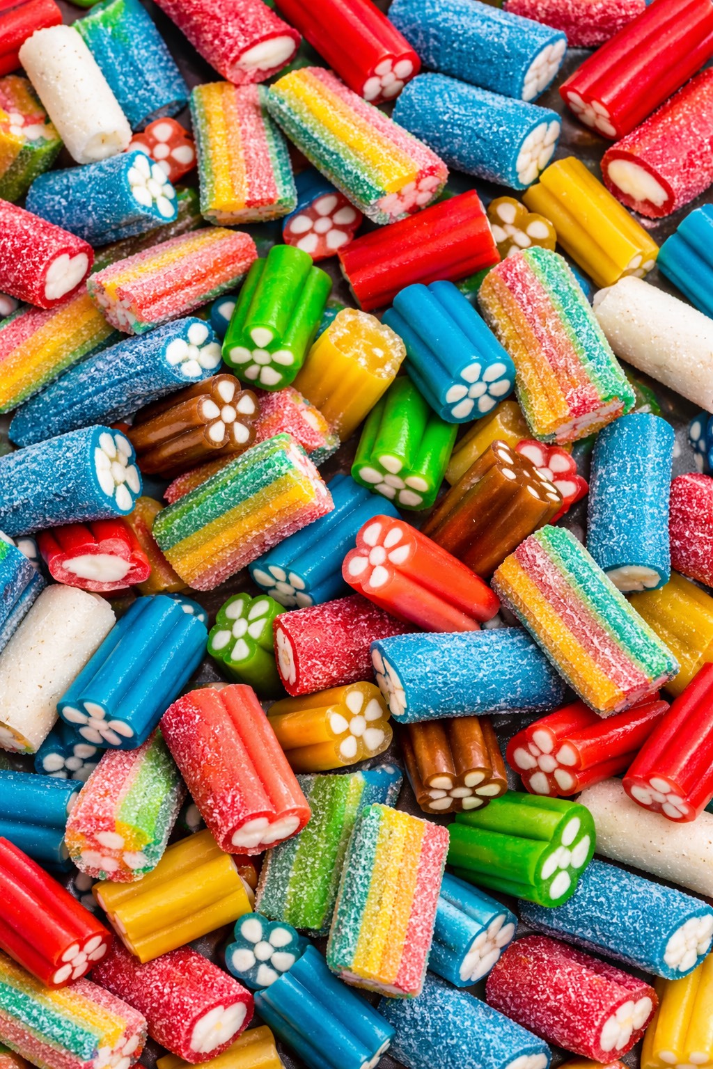 Zloženie: Cukor, glukózovo-fruktózový sirup, pšeničná múka (lepok), škrob, želatína, rastlinný tuk (palma), rastlinný olej (palma, kokos), kyseliny (E270 kyselina mliečna, E296 kyselina jablčná, E330 kyselina citrónová), regulátory kyslosti (E325 laktát sodný, E331 citrány sodné), aróma, soľ, emulgátor (E471 mono- a diglyceridy mastných kyselín), zvlhčovadlo (E422 glycerol), farbivá: (E100 kurkumín, E120 karmín, brilantná modrá FCF, E153, E163). Farbivá: E102, E110, E129, E133, E153. E129, E110 a E102 môžu nepriaznivo ovplyvňovať činnosť a pozornosť detí.